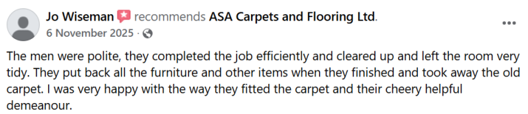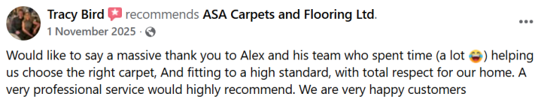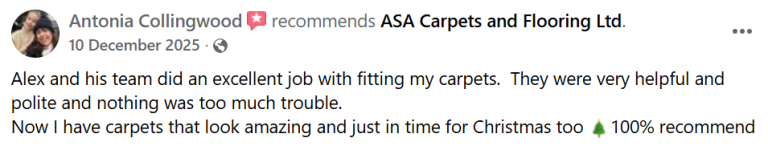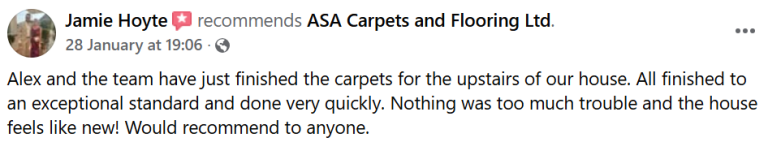 "A.S.A have completed our whole house in Flatweave. They were professional and as soon as I met Alex he made me confident I had chosen the right company to take on such a big job. I am so pleased with the results and would definitely recommend!"